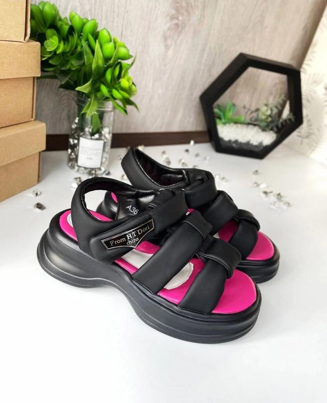 💎Шикарные черные босоножки для девушек.💎 Крутой дизайн. Застегиваются на липучку, которая позволяет регулировать объем ножки. Стелька комбинированная с супинатором. Легенькі. 32р. - 21,0см 34р. - 22,5см ❗ Измерение сделано по стельке лично мной, погрешность 1-2мм допустима.