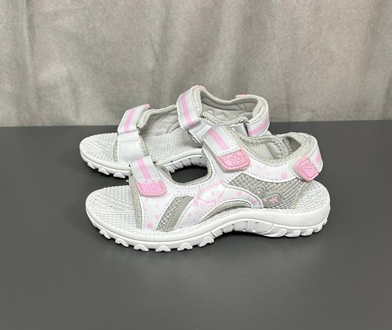 В наличии! Стильные босоножки для девочки. Застежки на трех липучках. Размеры: 31-21,3; 32-22; 33-22,5; 34-23; 35-23,7; 36-24,5см стелька, возможно отклонение +-2 мм, стелька замерная полностью. Наличие размеров уточняйте.