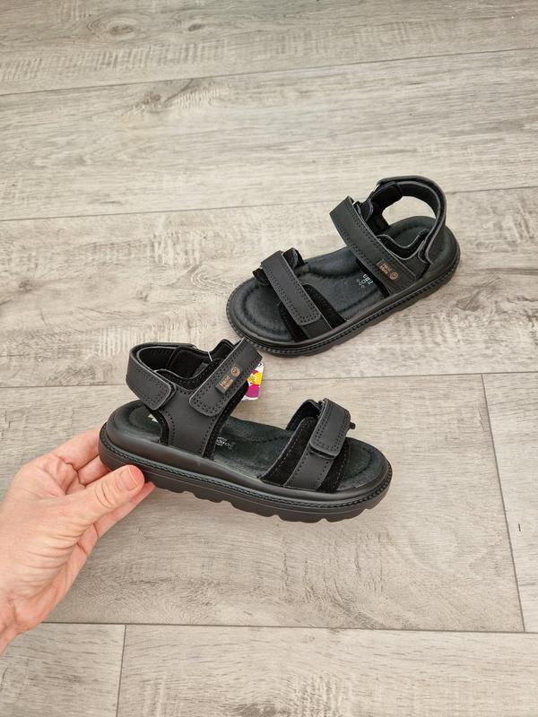 Босоножки для девочек Jong-Golf Код товара: C20572-0 Сезон: лето Цвет: черный Материал внутренний: кожаная стелька с дышащим супинатором. Материал наружный: искусственная кожа. Застежка: три липучки надежно держат ножку. Удобны для ежедневных прогулок, хорошо фиксируют ногу." Размеры по стельке от края до края полностью: 29г. по стельке 19,0 см 30р. по стельке 19,5 см (в) 33р. по стельке 21,5 см 36р. по стельке 23,5 см