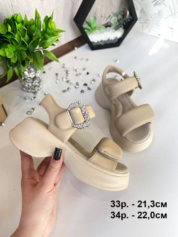 Крутезные бежевые босоножки для девушек. Застегиваются на две липучки, которые позволяют регулировать объем и подъем ножки. Стелька комбинированная с супинатором. Легенькі. 1000грн 33р. - 21,3см(1шт.) 34р. - 22,0см(2шт.) Измерение сделано по стельке лично мной, погрешность 1-2мм допустима.