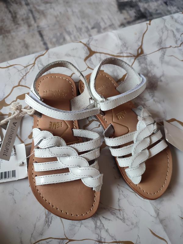 Босоножки для девочки,28размер. новые. натуральная кожа. на узкую ножку. есть нюанс на двух последних фото видно. на левом босоножке, из середины появились трещины, также есть и с тыльной стороны, но там почти не заметно потому что только поморщилась кожа. Поясочки мягкие. стелька также кожаная, мягкая, комфортная на ощупь. фирменные. бренд ZY.
