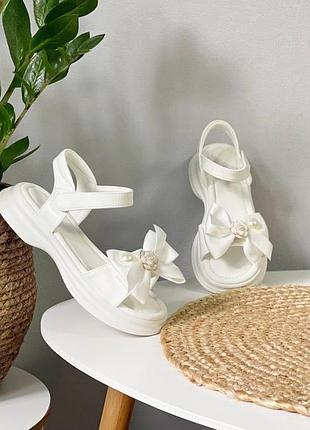 ✅Перед заказом проверьте, пожалуйста замеры, и уточните наличие размера. Наложка является только новой по почте по предоплате 150 грн. Укр почта по полной оплате. Белые босоножки ТМ Apawwa Легкие, удобные и очень элегантные - с атласным бантом, цветком и жемчужинкой. Материал- мягкая лакированная экокожа. Стелька кожаная.Фиксуются липучкой. Гибкие и очень легкие каждая пара в коробочке ЦИНА 930 32 размер 20.5 см (2 шт