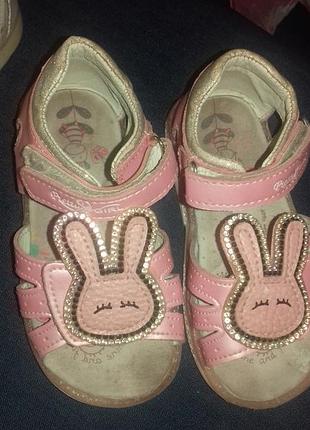 Детские босоножки с милым зайчиком в хорошем состоянии Длина стельки 14.5 см.