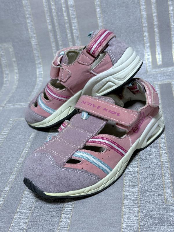 Босоножки сандалии 28,5 размер (18 см стелька) детские для девочки. Стан хороший. Искусственная кожа комбинированная с синтетическим материалом Смотрите детальные снимки Все вопросы пишите в сообщения Отправлю услугой "Беспечная доставка" от Шкафа любым перевозчиком Можно оплатить на карту до отправки Наложеним платежем не відправляю