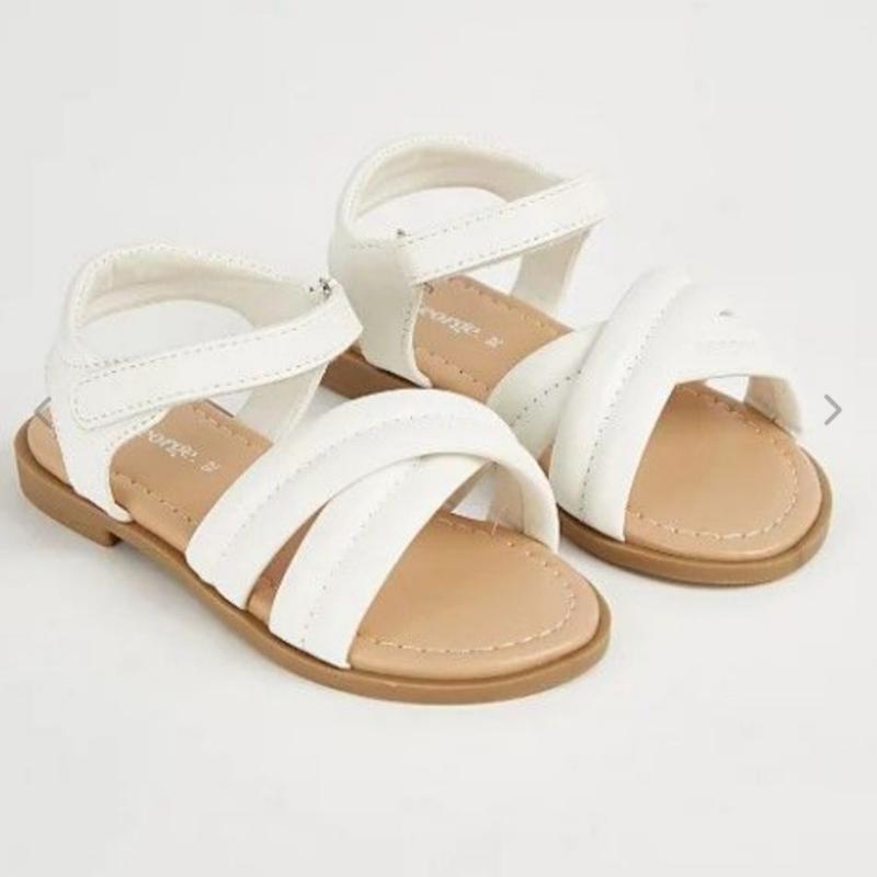 Идеальные летние девчонки сандалии. Полная стелька 15.4 см, на ножку 14.5 см в идеале. Ширина по стельке 6 см. Фиксация с помощью липучки на щиколотку. Спереди на стопу фиксации не предусмотрено пошивом. Материал - искусственная кожа. Удобная, прочная и гнется подошва.