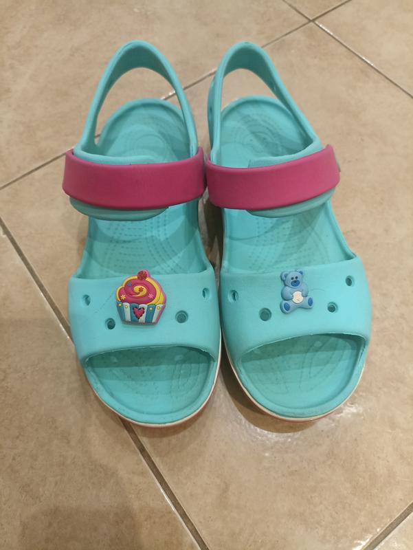 Легкие кроксы в очень хорошем состоянии. Липучки держат хорошо. На останньому фото вказала подряпину.