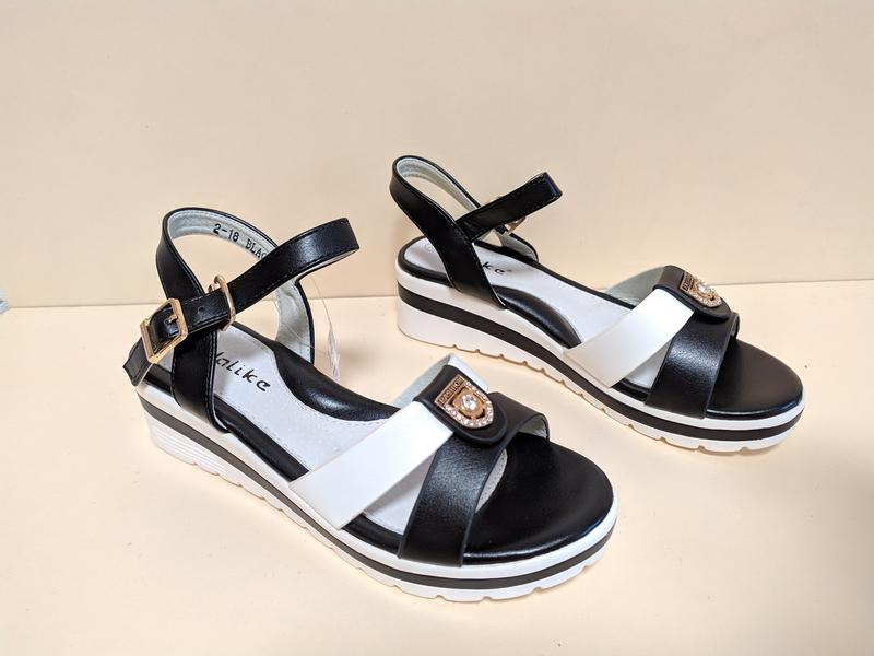 Характеристики товара: Размер 30 Торговая марка Yalike Стелька (см) 19.5 Материал верх Искусст. кожа Дополнительно застежка ремень открытый носок Цвет Белый Черный Босоножки для девочки на удобной, устойчивой платформе. Застёжка- регулируемый ремешок на крючке. Кожаная белая часть стельки, анатомически правильная. Не смотря на толстую подошву, босоножки очень лёгкие. В наличии размеры: 30р - 19.5 см Оплата : 1) 100% на карту Приват 2) Безопасная оплата Шафа Отправка в течении суток Смотрите другие мои объявления. Хороших покупок.