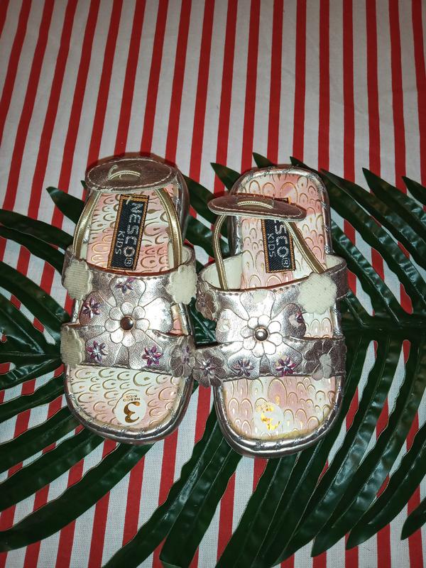 Золотистые босоножки для девочки. Новые, есть следы примерок.
