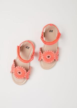 Яркие коралловые босоножки для девочки из искусственной кожи. Размер 33, по стельке 21,5 см от края до края. Есть такая же модель в ярко-салатовом цвете. Новые, в упаковке.