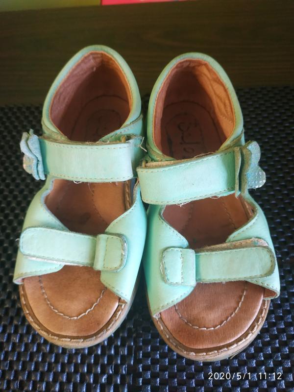 очень мягкие и кожаные босоножки салатового цвета. Две застёжки на липучках. стелька 14,5-15 см