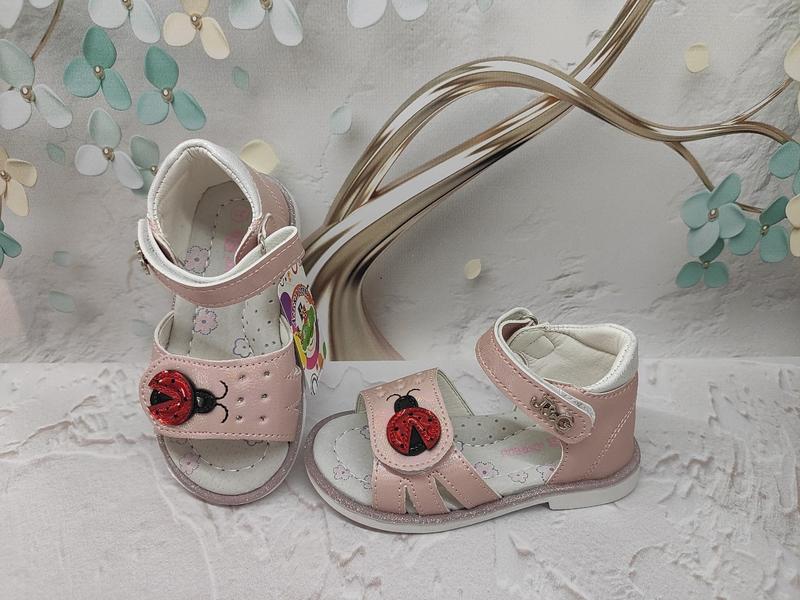 Классные босоножки для девочек хорошего качества!!! Стелька кожа с супенатором. Верх кожзам. Фиксация 2 липучки. Жёсткий задник и каблучок. Замеры от края до строчки!!!!: 23-13,2