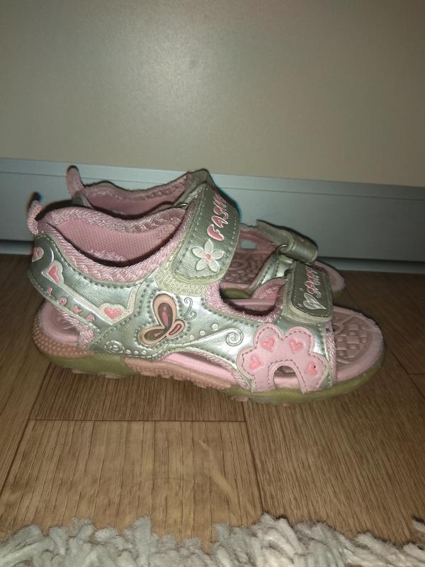 Босоножки в нормальном состоянии, сверху всё целое, липучки рабочие, но подошва на пяточке уже протерлась немного... Стелька от края до края 15 см.