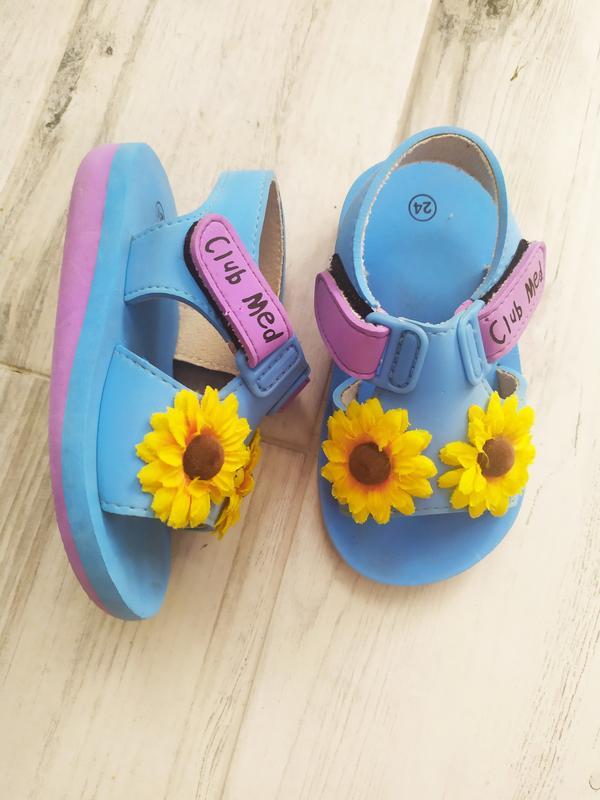 Лёгкие сандалии-босоножки для маленькой модницы. На липучках. Размер указан 24. По стельке от края до края 16 см. Все в идеальном состоянии. Смотрите фото