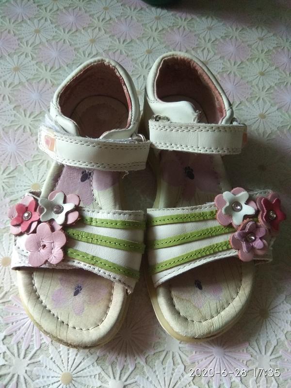 Кожаные босоножки для девочки фирмы Зебра. Указано размер 28,но маломерят. Стелька16. 7 см общая длина, до шва 16 см. Очень удобные, супинатор, подошва - антишок, объем регулируется липучками, липучки держат отлично. Потеряли один цветочек, в остальном состояние на фото. Отправлю Укрпочтой или НП после предоплаты. Возврата нет. Смотрите и другие мои объявления, есть много интересного.