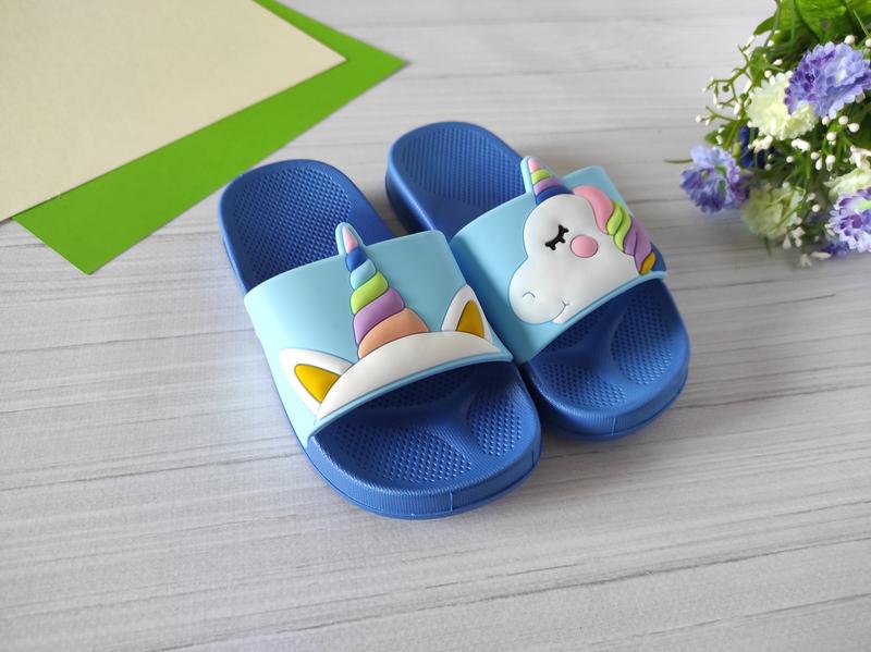 Яркие стильние шлепанци с любимой Единорожкой Подошва пена, верх резина Мягкие и гибкие Замеры от края до края Цена 170грн Синие 26-16 см -2 шт