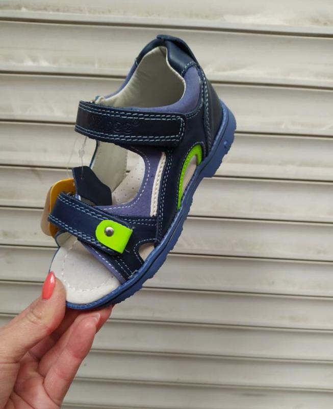 Лёгкие босоножки, подъём и полнота ножки регулируется прочными липучками, стелька и верх изделия- кожа, есть супинатор, пятка- уплотнена. Размеры:26-31 Длина стельки: 26 размер- 16.5 см 27 размер- 17 см 28 размер- 17.5 см 30 размер- 18.5 см 31 размер- 19 см