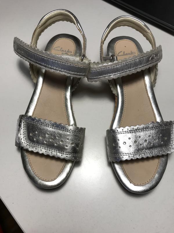 Красивые босоножки для девочки Clark’s Состояние хорошее, внутри есть нюансы на фото видно!!! Липучка хорошо крепится!!! Подойдут на ножку 20 см