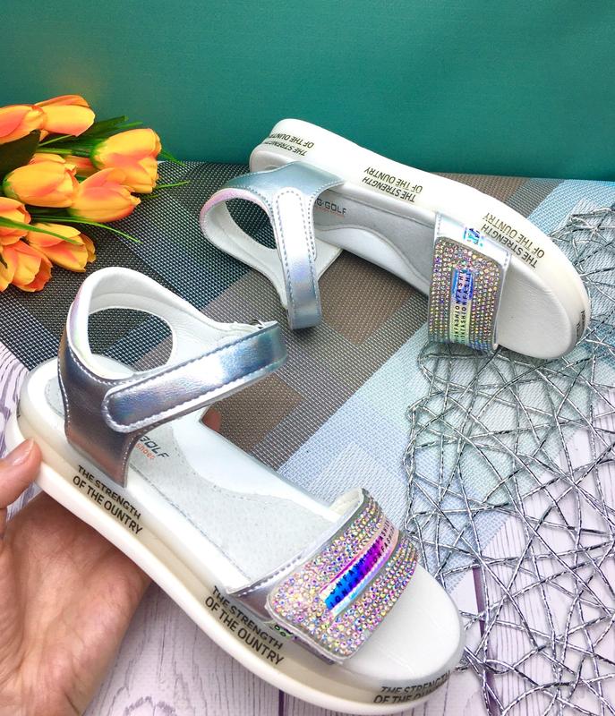 Легенькі ,стильні босоніжки 🌈для старших модниць! Нереально крутий дизайн ! Верх - екокожа Регулювання повноти за рахунок 2-х липучок шкіряна Устілка з супінатором В темряві світяться 😍 ❗️Вказана повна довжина устілки від краю до краю 32 розмір 20,5 см 33 розмір - 21,2 см 33 розмір - 21,2 см 34 розмір - 21,8 см .заворот