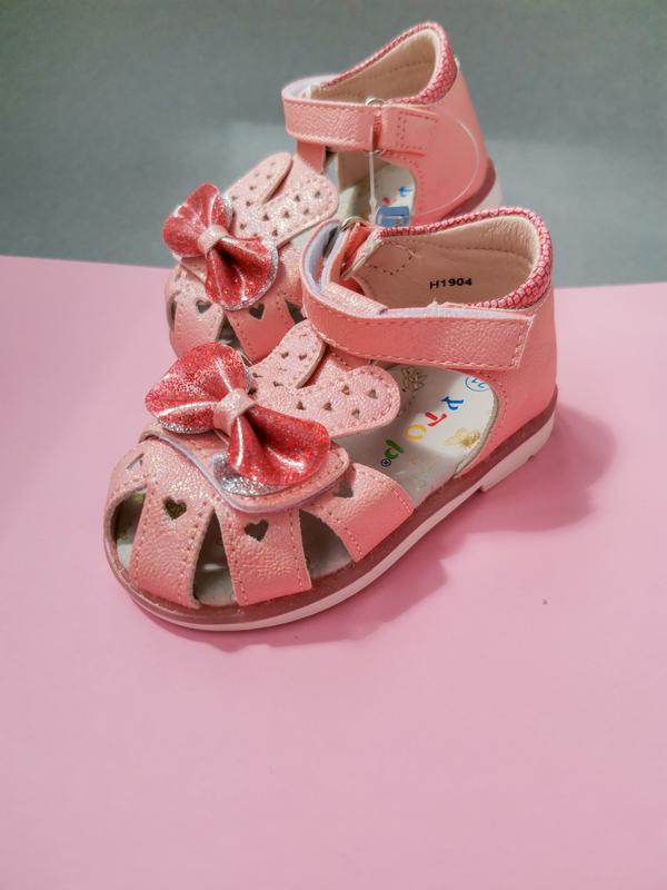 Фантастичні босоніжки для дівчат. Дуже вибоискуютт на сонечку. Верх - еко шкіра з перламутровим напиленням. Устілка шкіряна з супінатором. Мають дві липучки. 23 - 14.5 см 24 - 15 см 26 - 16.5 см Вартість 420