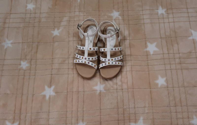 Босоножки в отличном состоянии, есть нюанс, нету 2-х камушек. Размер 32. Длинна всей стельки 20.5 см.