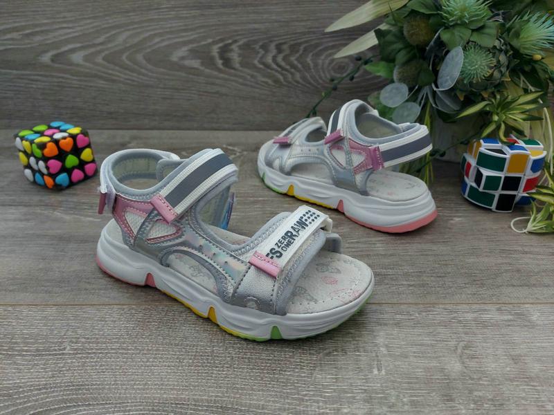 СВТ,Т БОМБЕЗНІ модні босоніжки для дівчаток ) Матеріал екошкіра голограма стелька шкіра+супінатор повнота і підйом регулюються на ліпучках заміри стельки повністю ВЖИВУ СУПЕР😍 37-24,1см