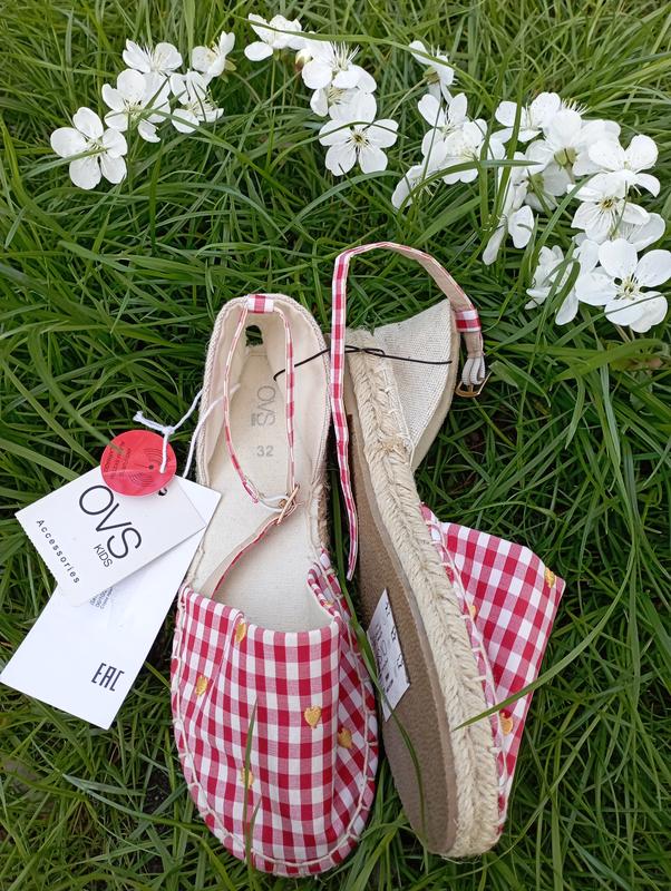 Эспадрильи летние на девочку OVS новая коллекция 100% хлопок, внутри на подкладе из хлопка, подошва отделана соломенным кантом, и подбита полиуретановой накладкой Цвет Красный Материал верха Хлопок Материал подкладки Хлопок Материал подошвы Пластик р. 32 стелька 20,2 см