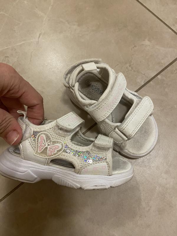 Стильні босоніжки для дівчинки. Підійдуть як до спортивного одягу так і для платтячка. Встілка 13,5 див. Стан дуже хороший. Без жодних дефектів.