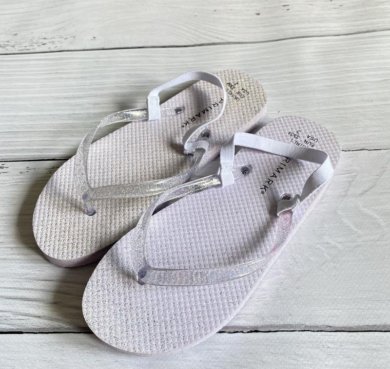 Нові шльопки на дівчинку 33/34 розмір На одному більше бльосточок, тому колір подошви