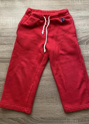 Фото на тілі нема На талії резінка середноі ширин в ній білий шнурок Фасон вільний прямий кльош Підійде на 2-4 роки оріентуйтесь по замірам Щільні теплі Тягучі Є кишені Довжина 50 см) Пот 22 см) Поб 37 см) Знизу штанини 16,4 см) Висота посадки 20-24 см) Шаговий 34 см)