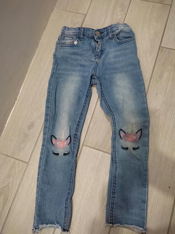 Джинси для дівчаток на 6-7 років з красивою вишивкою единорога