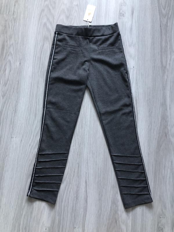Дуже гарні лосини сірого кольору з тоненькими срібними лампасами. Дуже зручні на широкій резинці та приємні до тіла. Підійдуть на кожен день а також в школу. Виробник Туреччина фірма Сichlid.