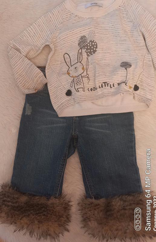 *Бріджи манжети-хутро штучне , можно відстібнути. Довжина 45 см . Пояс на півобхват - 28.5, бедра - 31 см блискавка працює. Без нюансів. *Кофта вільний крой з зайчиком . Довжина спереду від комірці спинки 32 см довжина спинки 36см *Тепла кофта "2 lovely" Фірма wanex. на ріст 104 3-4 роки *Кофта свинка Peppa Бриджи і кофти різних фірм. кофта George , winex речі моєї дитини . За додатковою інформацією звертайтесь Ціна за комплект