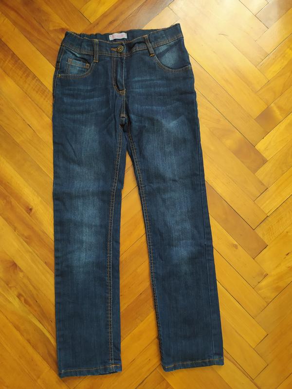 Джинси на дівчинку, темно синього кольору, плотні, утеплені котоновою підкладкою. Стан нових! Пот 32-33см(стягується), Поб 40см, Заг. довжина 85см