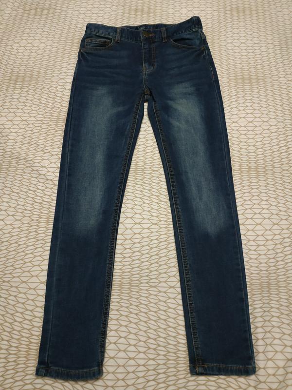Довжина 86 см, внутрішній крок 63 см, в поясі 32 см, є утяжка , стегна 39 см, 85%котон, 14%поліестер, 1%еластан.