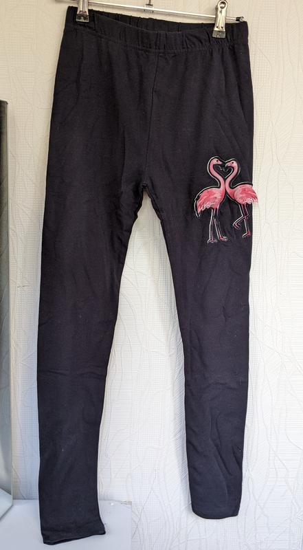 Леггинсы на девочку, нашивка с фламинго, крылышки объемные. Состав: 95% - хлопок. 5% - эластан. Размер по бирке: 16.