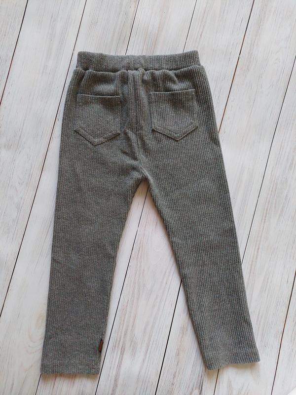 Штани в рубчик для дівчат, не утеплені. Носилися мало, не вгадала з розміром. Заміри: довжина 55 см, шагова 34,5 см, пояс н/о 25 см. Пише розмір 110, але реально заменшені.
