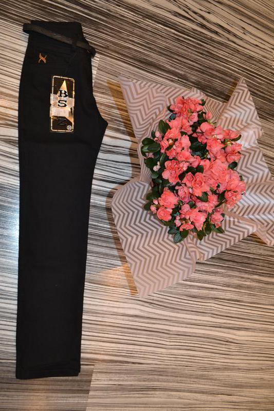 Стильные черные брючки джинсового кроя, отличного качества, хорошая глубокая посадка, утяжки на талии нет, хорошо тянутся - поэтому идеально садятся по фигуре, благодаря тому, что в составе есть стрэйч - колени не вытягиваются, пояс идет в комплекте Размерный ряд 22, 23, 24, 25 В наличии