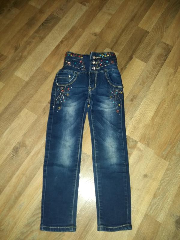 Джинсы состояние супер,р.116, одеты только 1раз, после зимы уже малы. На поясе резинка, хорошо тянется и фиксируются на талии. Застегиваются на молнию и 3 пуговки. Все стразики на месте. Замеры Длина 65 Внутр.шаг.шов 46 Об 31 Пояс 24 тянется до 31 Ширина штанины под матней 17 Низ 11.5 Пересылаю в другой город Цена 150грн
