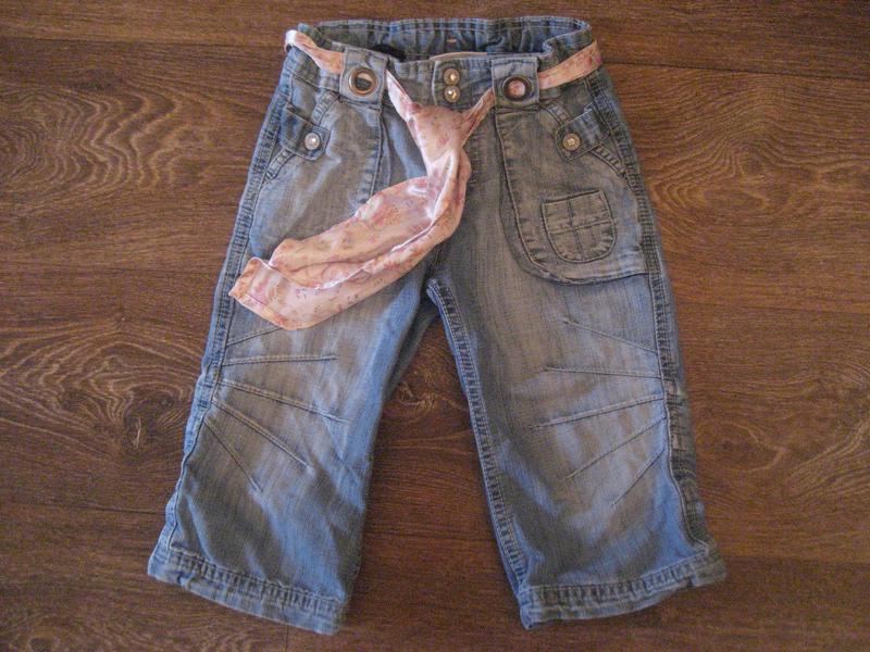 Джинсовые капри с шелковым поясом.