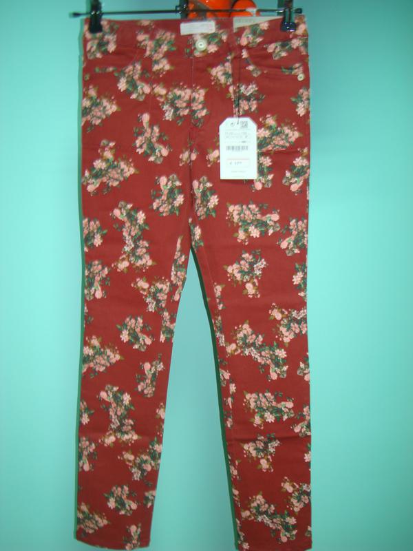 Стильные джинсы для девочек от известного испанского бренда Zara. Оригинал!!! Два накладных кармана, сзади - кармашки-"обманчики", талия регулируется внутренней резинкой. Очень актуальный цветочный принт! Отличное качество!! Размеры в наличии: 11-12 лет (рост 152 см).