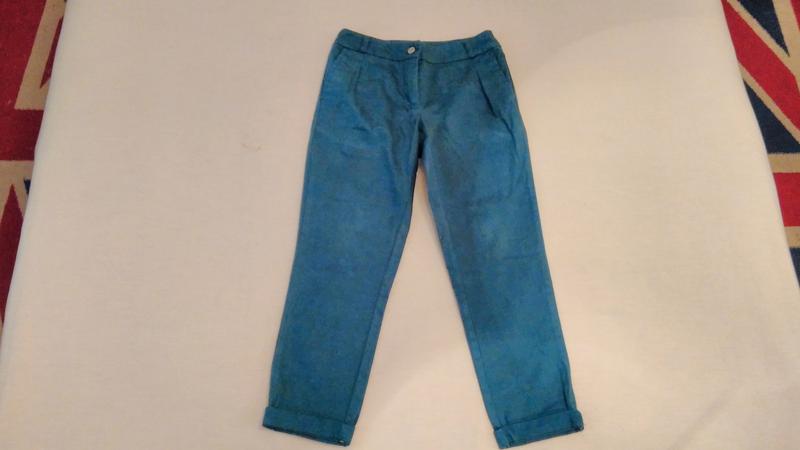 Фирменные брюки от John Baner Можно в школу. Цвет морской волны (насыщенный) чуть ярче,чем на фото. Широкий фасон брючек,заужается книзу. Внизу - подкатики. Застёжки - металлическая молния+ металлическая пуговица с фирменными логотипами. Впереди скрытые карманы Сзади функциональные карманы с металлическими пуговками. Размер 146см (10-11лет) ЗАМЕРЫ: П/об талии - 34см П/об бёдер - 47см Длина по боковому шву - 80см Шаговый шов - 59 см Глубина посадки впереди - 22см Глубина посадки сзади - 32см Дополнительная информация - по запросу.