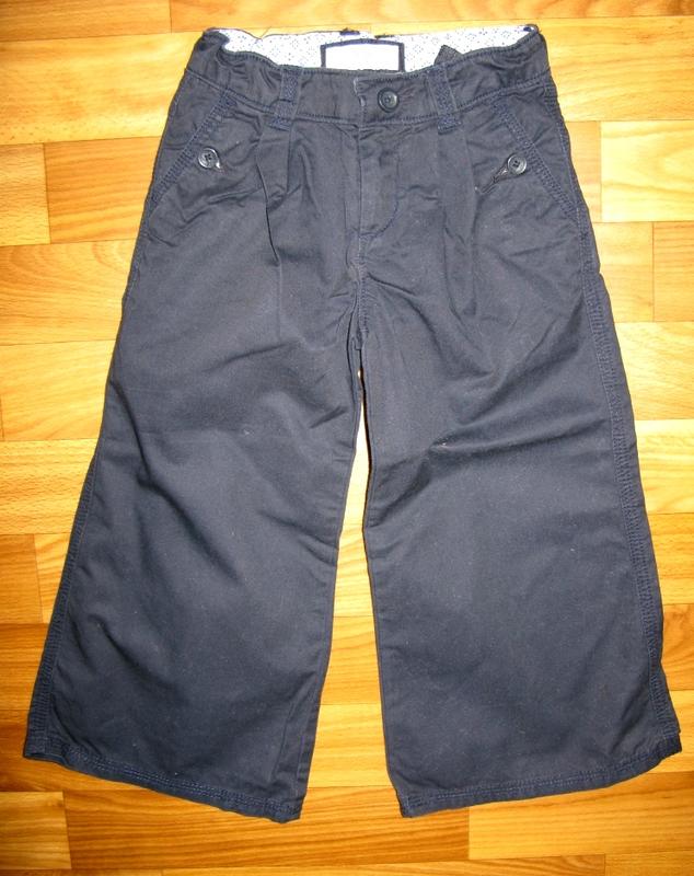 темно-синие штаны GAP на 3 года. 100% хлопок. Длина- 52 см, шаг-38 см, ПОТ-26 см, ПОБ-33 см. Состояние отличное (может кому-то на шорты) - 25 грн