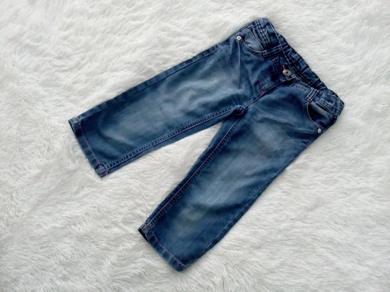 Джинсовые Капри для девочки 134 см 9 лет. ПО ширины пояса 32 см. ПО бедер 34 см. Длина по боковому шву 54 см, длина по внутреннему шву 37 см. Ширина низа 15 см, ширина верха штанины 19 см в районе верха внутреннего бокового шва.
