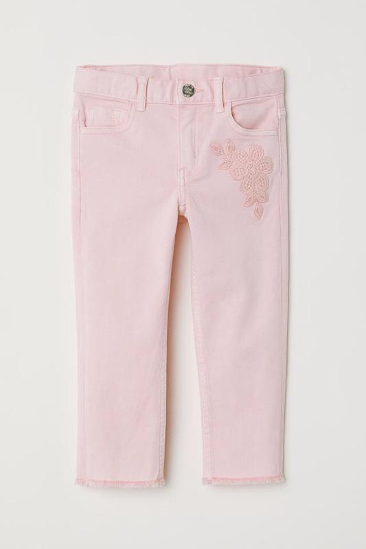 Брюки длиной три четверти из эластичного твила. Вышитый рисунок сверху. Карманы спереди и сзади. Необработанный край с бахромой снизу на штанинах. Регулируемая резинка на талии, а также ложный гульфик. СОСТАВ Хлопок 98%; Эластан 2% Размеры розовых: 110 {4-5 лет} 116 {5-6 лет} 122 {6-7 лет}