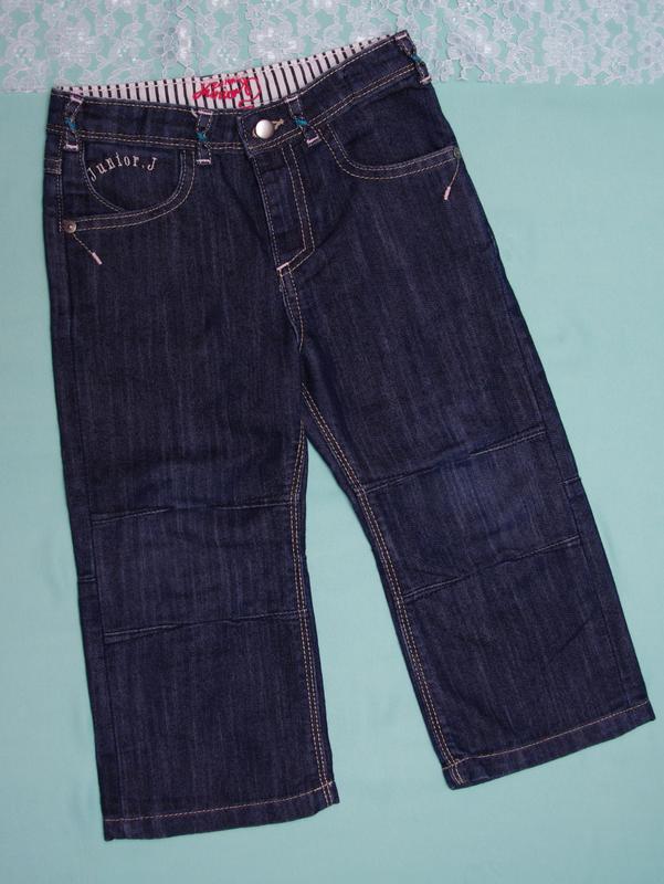 Брюки из качественного джинса средней плотности. Почиленные на коленях. Украшены симатическими бантиками. Состояние новые без бирки. Более детально запрашивайте. Ответим а все Ваши вопросы.