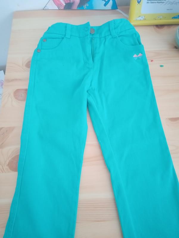 Бірюзові бавовняні штанці з елементами вишивки. Дуже гарно виглядають