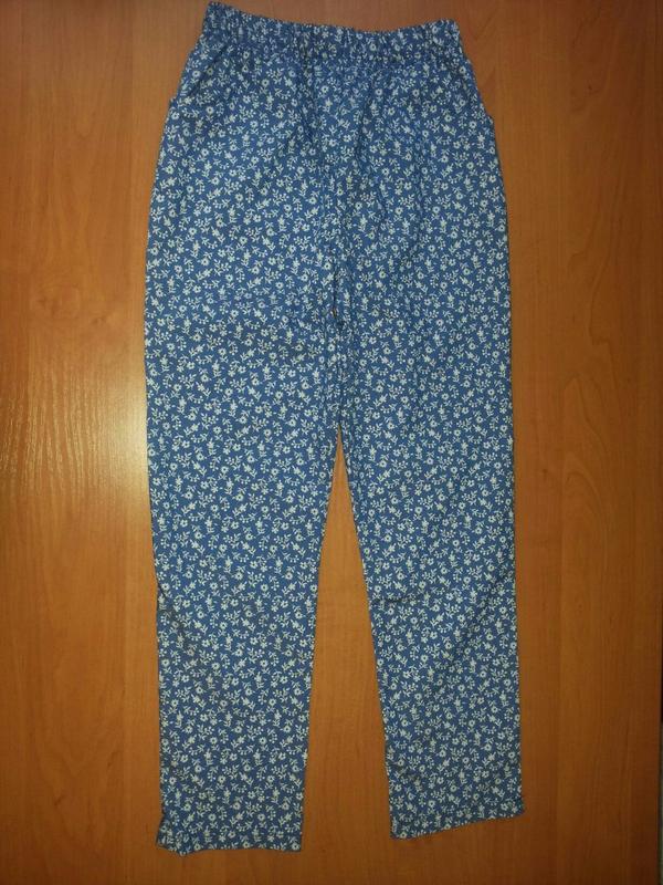 штани тонкі голубого кольору в білих квіточках.довжина штанів110р/65см;116р/69см .пояс на резинці