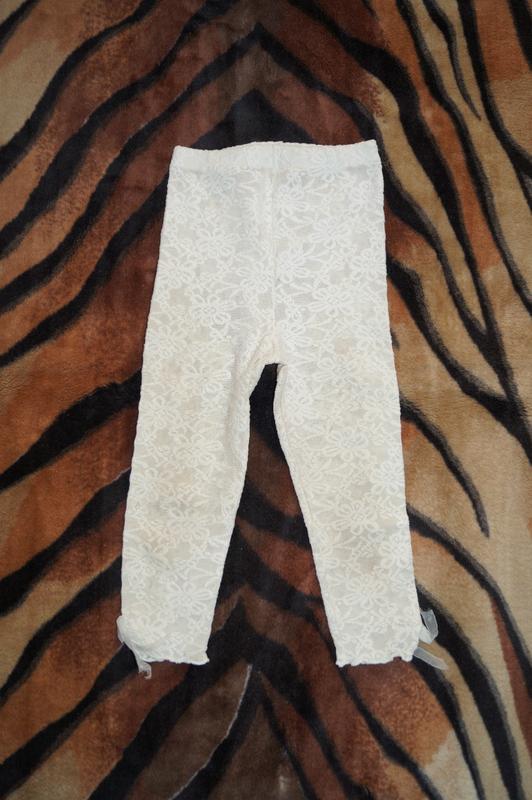 Кружевные бежевые лосины с милым бантиком снизу. Нарядно смотрятся на детских ножках. Идеальны под юбки, шорты, туники. ТМ Yumese (Турция). Ткань - хлопок, эластан. Состояние - отличное (без дефектов). Покупали новыми, носил только наш ребенок. Замеры: Длина 47 см ПОТ 20 см Вн шов 28 см