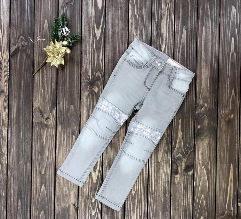 Серые джинсы на девочку 2-3 года Хорошо тянуться С пайетками В поясі регулюються, довжтина 55, поб 26,5, шаг 37, пояс 24,5 см