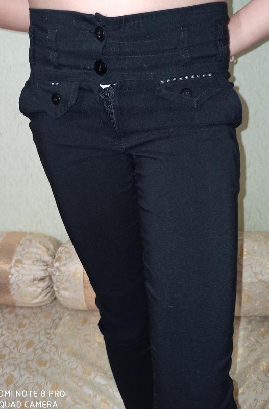 Качество и состояние отличные, не хватает пару стразиков. Замеры: длина-79 см, по внутреннему шву 60 см, пот 25, тянется до 30 см, поб 27 см, тянется до 32 см, ширина штанины сверху 18 см, внизу 11 см.
